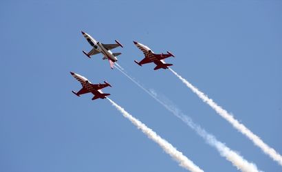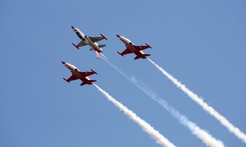 Türk Hava Kuvvetlerinin akrobasi timi Türk Yıldızları, Malazgirt Zaferi'nin 954. yıl dönümü etkinlikleri kapsamında Muş'un Malazgirt ilçesinde gösteri uçuşu gerçekleştirdi.