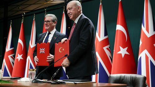 Cumhurbaşkanı Erdoğan ve İngiltere Başbakanı Keir Starmer, Cumhurbaşkanlığı Külliyesi'nde Eurofighter Typhoon işbirliği anlaşmasını imzaladı.