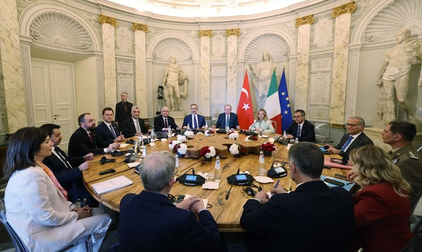 Türkiye-İtalya 4. Hükümetlerarası Zirvesi, Cumhurbaşkanı Recep Tayyip Erdoğan ve İtalya Başbakanı Giorgia Meloni başkanlığında başladı. Zirveye, Dışişleri Bakanı Hakan Fidan, Gençlik ve Spor Bakanı Osman Aşkın Bak, Kültür ve Turizm Bakanı Mehmet Nuri Ersoy, Milli Savunma Bakanı Yaşar Güler, Ticaret Bakanı Ömer Bolat, AK Parti Genel Başkan Yardımcıları Halit Yerebakan ile Faruk Acar katıldı.