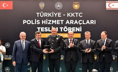 Törenin ardından, Türkiye tarafından hibe edilen 29 itfaiye ve polis hizmet aracı, KKTC Polis Genel Müdürlüğü'ne resmi olarak teslim edildi.