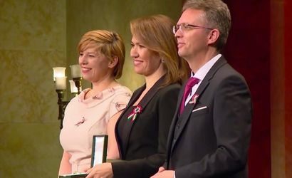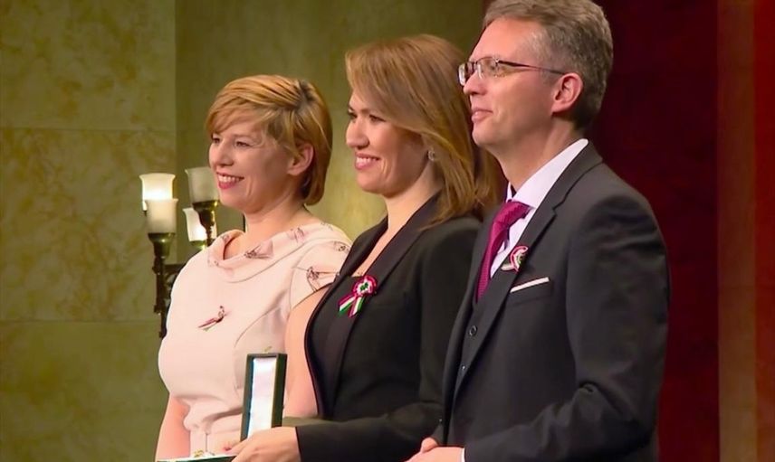 Türkiye’nin Budapeşte Büyükelçisi Gülşen Karanis Ekşioğlu (ortada) , Macaristan Devleti tarafından Liyakat Nişanı’na layık görüldü. Macaristan'ın başkent Budapeşte’de düzenlenen törende Macaristan Cumhurbaşkanı Tamas Sulyok'un imzasını taşıyan Nişan, Kültür ve İnovasyon Bakanı Balazs Hanko (sağda) tarafından Karanis Ekşioğlu takdim edildi.