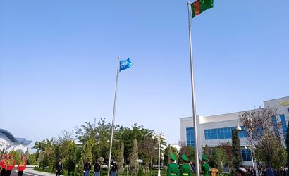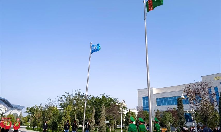 Konuşmaların ardından, Türkmenistan ve BM bayrakları askeri bando eşliğinde göndere çekildi.