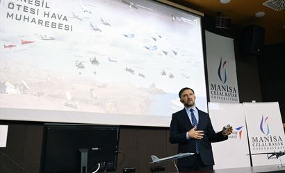 Türk Havacılık ve Uzay Sanayii AŞ (TUSAŞ) Genel Müdürü Dr. Mehmet Demiroğlu, Manisa Celal Bayar Üniversitesinde (MCBÜ) düzenlenen "Dönüşümü Yönetmek" konulu konferansta öğrencilerle buluştu.
