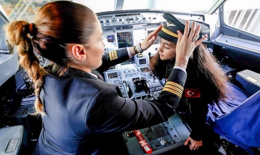 Ece Naz, THY hangarlarını gezdi ve uçağa binerek pilot koltuğuna oturdu. Annesinin izinden giderek Hürkuş uçaklarında pilotluk yapmayı hedefleyen Ece Naz için bu adım büyük önem taşıyor.