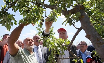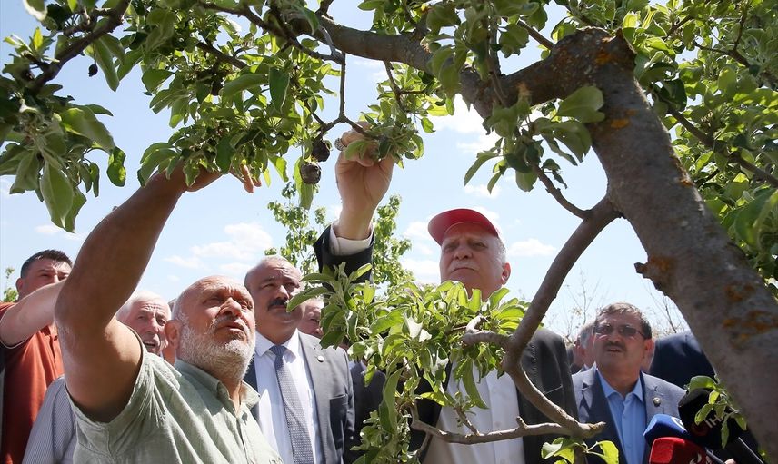 Türkiye Ziraat Odaları Birliği (TZOB) Genel Başkanı Şemsi Bayraktar, Çorum'da dondan etkilenen meyve bahçelerini inceledi.