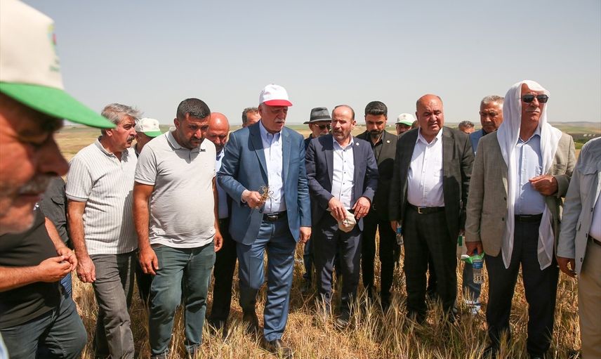 Türkiye Ziraat Odaları Birliği (TZOB) Genel Başkanı Şemsi Bayraktar (ortada), Diyarbakır'da çiftçilerle bir araya geldi. Bayraktar, Çınar ilçesinde kuraklıktan etkilenen tarlaları inceledi, çiftçilerin sorunlarını dinledi.