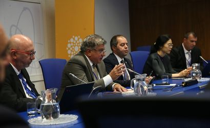 Uluslararası Atom Enerjisi Ajansı'nda (UAEA) Türkiye'nin nükleer enerji yol haritası ile ülkedeki nükleer teknolojinin yenilikçi uygulamaları tanıtıldı. Toplantıda, Türkiye'nin BM Viyana Ofisi nezdindeki Daimi Temsilciliği'nde Elçi Prof. Dr. Mustafa Kibaroğlu (sol 2), konuşma yaptı.