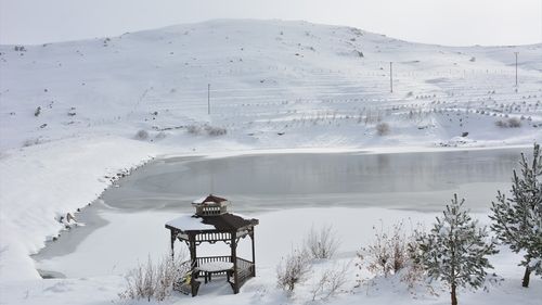 Tokat'ın Başçiftlik ilçesinde Üçoluk Göleti'nin yüzeyi kar yağışı ve soğuk havanın etkisiyle dondu.