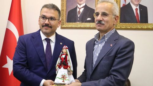 Ulaştırma Bakanı Abdulkadir Uraloğlu, Kars-Iğdır-Aralık-Dilucu demir yolu temel atma töreni için Iğdır'a gelerek Vali Ercan Turan ve AK Parti Iğdır İl Başkanlığını ziyaret etti.