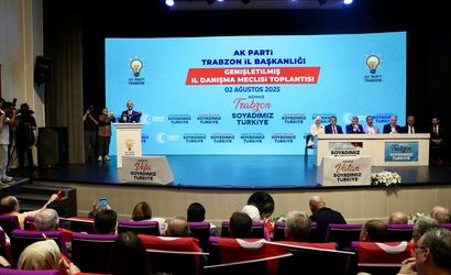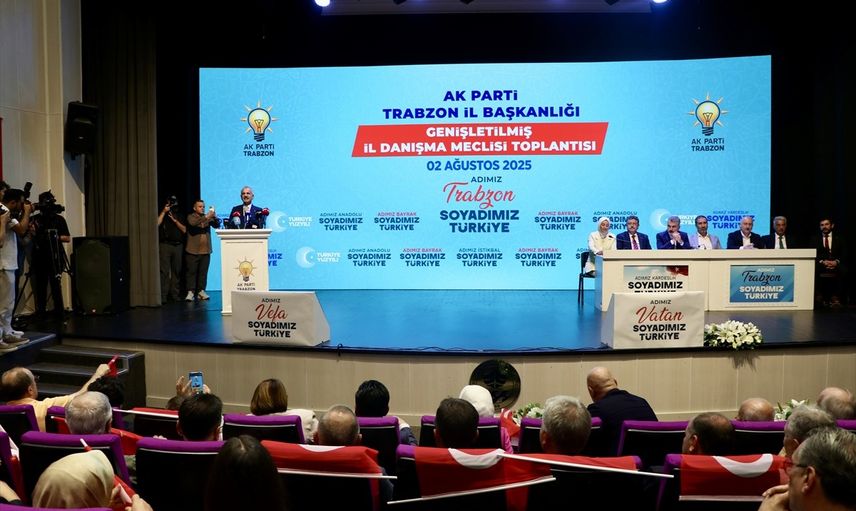 Ulaştırma ve Altyapı Bakanı Abdulkadir Uraloğlu (ortada), Hamamizade İhsan Bey Kültür Merkezi'nde düzenlenen AK Parti Trabzon Genişletilmiş İl Danışma Meclisi Toplantısı'na katıldı.