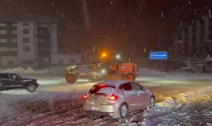 Karayolları ekipleri hem oteller bölgesinde hem de yol güzergahında kar küreme çalışması yürütüyor.