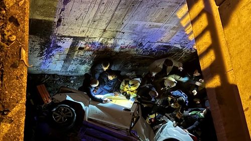 Ümraniye'de viyadükten düşen otomobilin sürücüsü Eren B., itfaiye ekipleri tarafından kurtarıldı ve hastaneye kaldırıldı.