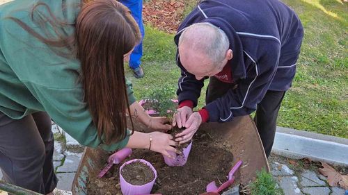 Sultanhisar'da üniversiteli gönüllüler huzurevini ziyaret edip çiçek dikti, şarkı ve türkülerle yaşlıların gönlüne dokundu.