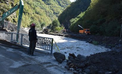 Ulaştırma ve Altyapı Bakanı Abdulkadir Uraloğlu ile Gençlik ve Spor Bakanı Osman Aşkın Bak, selden etkilenen Artvin'in Borçka ilçesinde sürdürülen yol açma çalışmalarını inceledi.