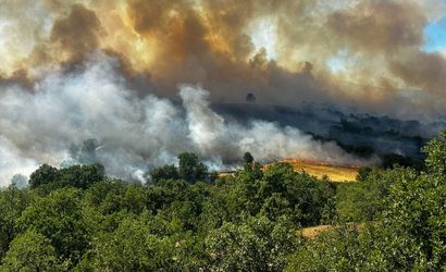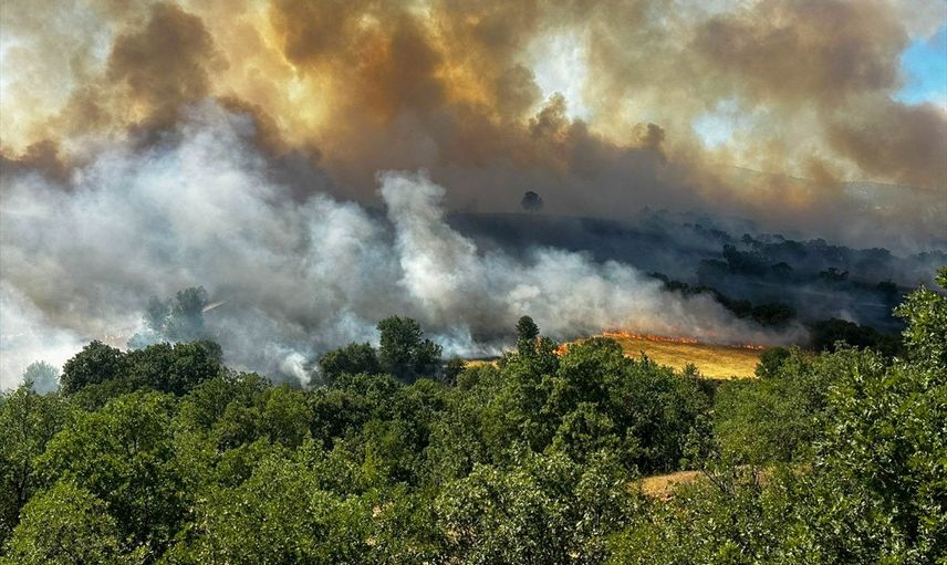 Uşak'ın Eşme ilçesinde, henüz belirlenemeyen bir nedenle tarım arazisinde başlayan yangın, hızla meşelik alana sıçradı. Yangının, Balabancı köyü yakınlarında patlak verdiği bildiriliyor.