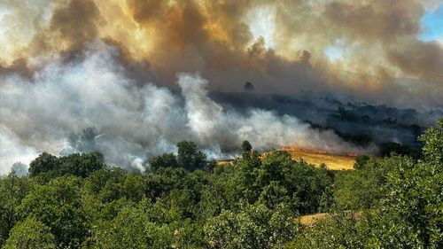 Uşak'ın Eşme ilçesinde başlayan yangına, havadan ve karadan müdahale ediliyor. Yangın meşelik alana sıçramış durumda.