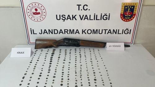 Uşak'ın Banaz ilçesinde yapılan operasyonda 232 tarihi sikke ve bir ruhsatsız av tüfeği ele geçirildi.