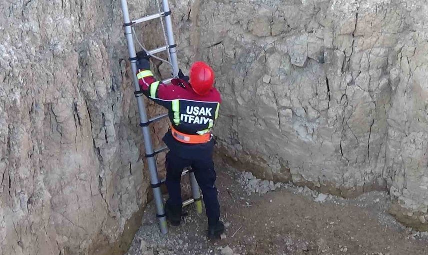 Uşak'ta yaklaşık 4 metre derinliğindeki çukura düşen keçi, Uşak Belediyesi İtfaiye ekipleri tarafından kurtarılarak sahibine teslim edildi.