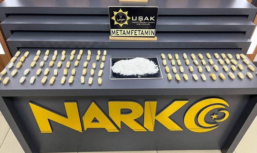 Evdeki aramada, bir zanlının üzerinden kapsül içinde metamfetamin ele geçirildi. Şüpheliler, sağlık kontrolü için Uşak Eğitim ve Araştırma Hastanesi'ne götürüldü.