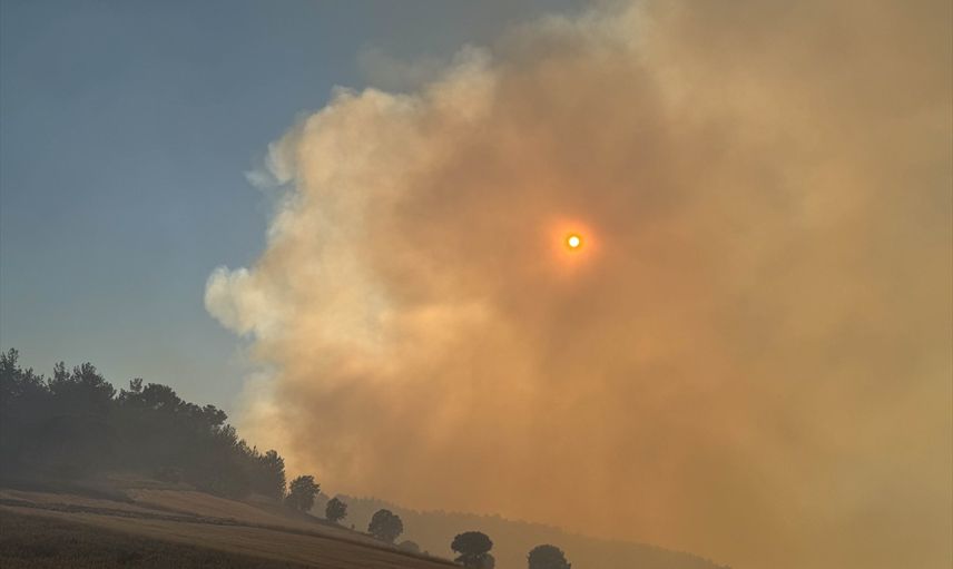 Uşak'ta tarım arazisinde başlayıp ormanlık alana sıçrayan yangına havadan ve karadan müdahale ediliyor.