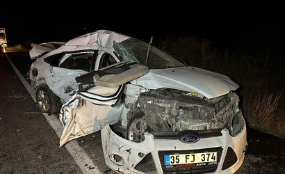 Uşak-Afyonkarahisar kara yolunda ilerleyen 45 FN 700 plakalı tırı süren E.İ. (35) ile 35 FJ 374 plakalı otomobili kullanan Y.Ç. (52), Büyükoturak Kavşağı'nda çarpıştı.
