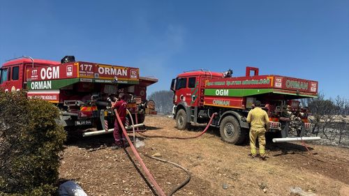 Uşak'ta tarlada başlayıp makilik alana sıçrayan yangın, havadan ve karadan yapılan müdahalelerle kontrol altına alındı.