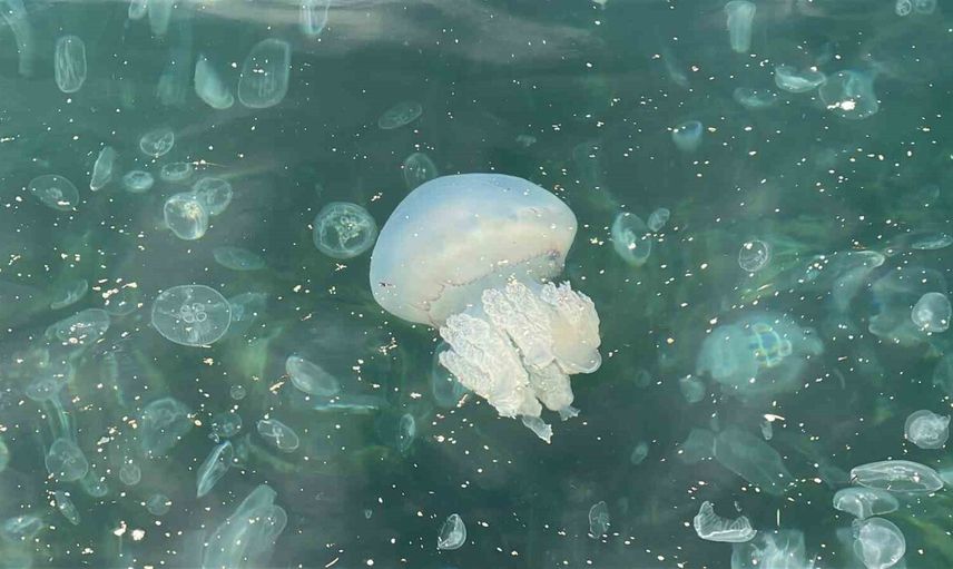 Üsküdar Kuleli sahilinde denizin yüzeyi neredeyse tamamen binlerce denizanasıyla kaplandı. Kıyıya vuran denizanası yoğunluğu sahilde dikkat çekici ve hayret uyandıran görüntüler oluşturdu.