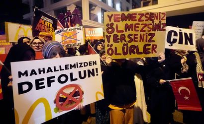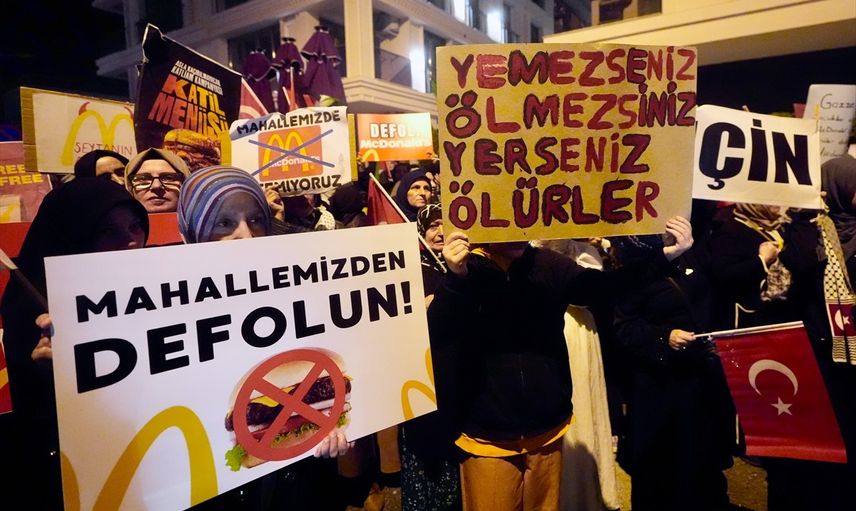 Üsküdar'da mahalle sakinleri, şube açmayı planlayan McDonald's'ı protesto etti. Bahçelievler Mahallesi Kaldırım Caddesi'nde açılması planlanan McDonald's şubesi önünde başlattıkları protestonun altıncı gününde bir araya gelen mahalle sakinleri, "Mahallemizde katil İsrail destekçisi istemiyoruz" yazılı pankart açtı.