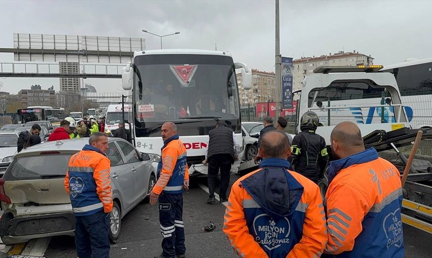 Bu durum, aynı istikamette ilerleyen 34 GAT 030 plakalı otomobilin durdukları araca çarpmasına neden oldu. Savrulan otomobile ise 07 LBS 06 plakalı yolcu otobüsü çarparak aracın bariyerlere sürüklendiği bildirildi.