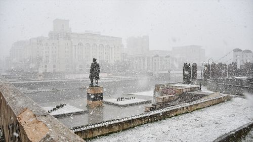 Kuzey Makedonya'nın başkenti Üsküp'te sabah saatlerinden itibaren etkili olan kar yağışı, yaşamı olumsuz etkiledi ve kenti beyaza bürüdü.