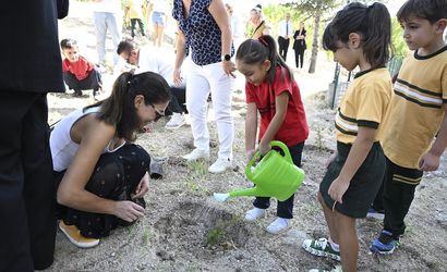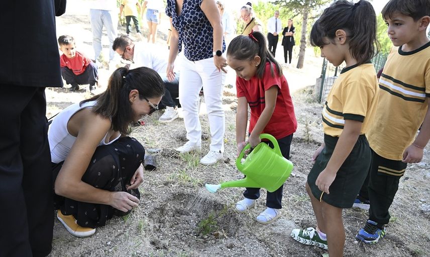 Başkentte, Eryaman Şehit Rıfat Çelik İlkokulu bahçesinde düzenlenen etkinlikte, okul öncesi ve ilkokul 1'inci sınıfa başlayan minik öğrenciler velileri ve öğretmenleri ile birlikte kendilerine özel temin edilen fidanları dikti ve onlara can suyunu verdi.