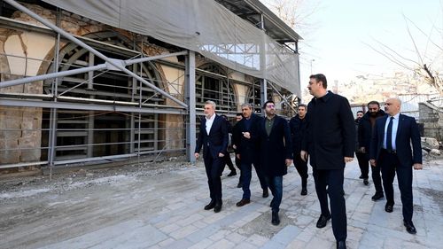 Vakıflar Genel Müdürü Sinan Aksu, Kahramanmaraş'taki deprem sonrası tarihi vakıf eserlerinin restorasyon çalışmalarını inceledi.