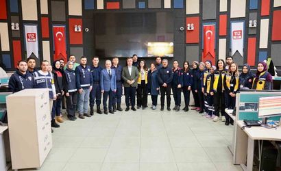 Erzincan Valisi Hamza Aydoğdu, Erzincan İl Sağlık Müdürü Dr. Cihan Tekin ile birlikte Erzincan 112 Acil Çağrı Merkezini ziyaret etti.