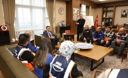 Kütahya İl Afet ve Acil Durum Müdürü İsmail Özkan, Destek AFAD gönüllüleri ve AFAD personeliyle birlikte Kütahya Valisi Musa Işın'ı makamında ziyaret etti.