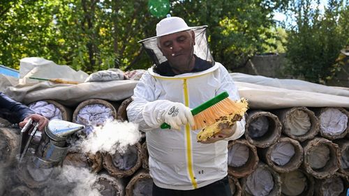 Giresun'dan gelen 50 kişilik turist kafilesi, Van'da arıcı Ömer Akbulak eşliğinde karakovan balı hasadına katıldı.