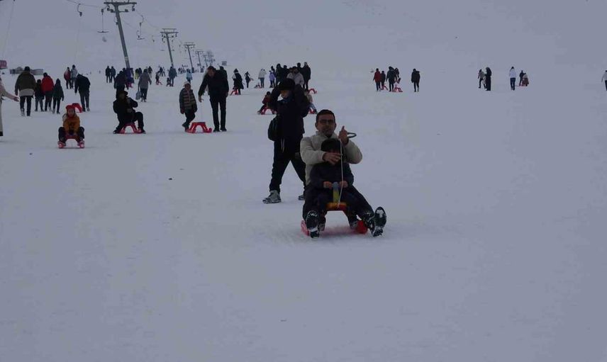 Aileleriyle birlikte merkeze gelen çocuklar, kayak ve kızak keyfi yaparak tatilin tadını çıkardı. Ziyaretçiler, Van Gölü manzarası eşliğinde kaymanın ayrı bir keyif verdiğini belirtti.