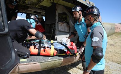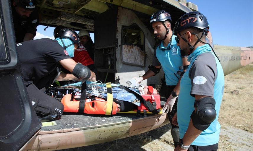 Van'ın Erciş ilçesinde Ulusal Medikal Kurtarma Ekibi (UMKE) koordinasyonunda gerçekleştirilen helikopter kazasında arama kurtarma tatbikatı, 4 ilden toplam 125 personelin katılımıyla başarıyla yapıldı.