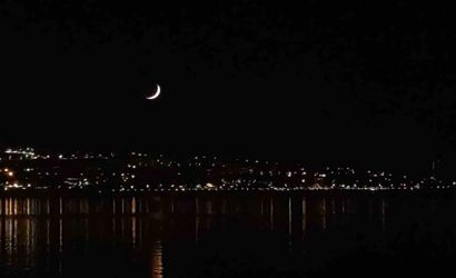 Van’da gün batımının ardından ortaya çıkan hilal, kentte adeta tablo gibi bir manzara oluşturdu.
