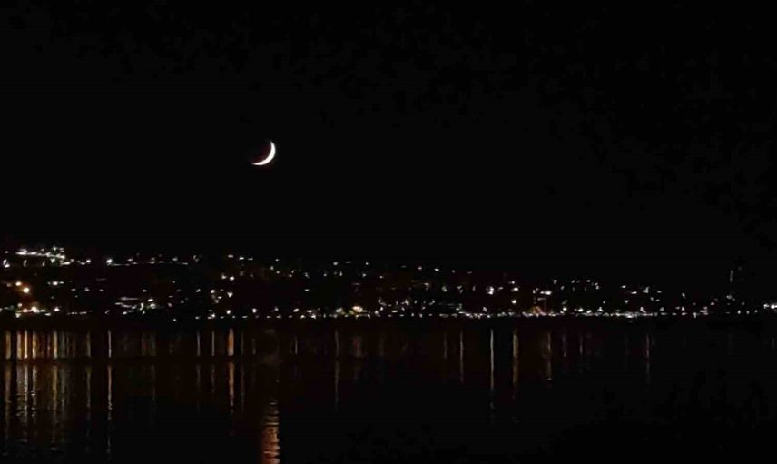 İnce hilalin süzülen parlak ışığı, şehir siluetiyle birleşerek görsel bir şölen sundu.