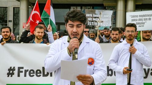 Van'da sağlık çalışanları ve üniversite öğrencileri, İsrail'in Gazze'ye yönelik saldırılarına karşı protesto düzenledi.