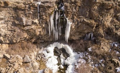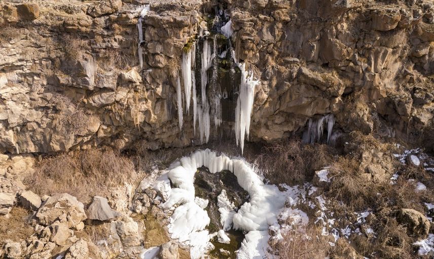 Van'da soğuk havanın etkili olduğu Erciş ilçesindeki Koçköprü Kanyonu'nda buz sarkıtları oluştu.