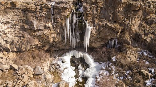 Van'ın Erciş ilçesindeki Koçköprü Kanyonu'nda buz sarkıtları oluştu, doğa severler için göz alıcı bir manzara sunuyor.