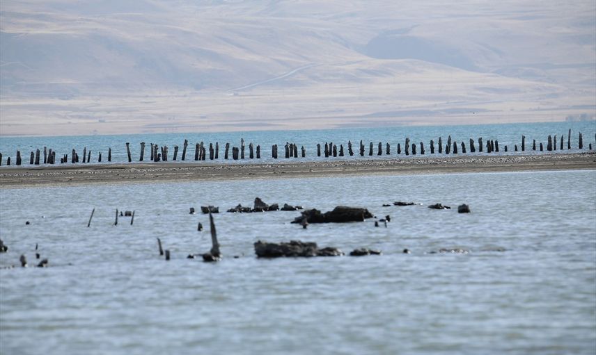 Tarihi kalıntıların, mikrobiyalitlerin (dikit) ve eski yerleşim alanlarına ait yapı kalıntılarının görülebildiği göl kıyısında, yıllardır su altında kalan bazı yapılar da çekilme sonucu açığa çıktı. Muradiye ilçesine bağlı Ünseli Mahallesi'nde suyun çekilmesiyle ahşap iskelenin ayakları ortaya çıktı.