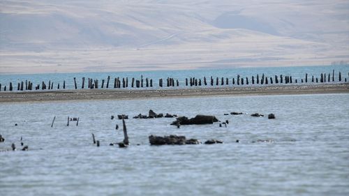 Van Gölü'ndeki çekilme, Muradiye Ünseli kıyısında asırlık ahşap iskelenin ayaklarını görünür kıldı; uzmanlar iklim değişikliğine dikkat çekiyor.