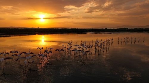 Van Gölü'nde Flamingoların Büyüleyici Gün Batımı Görüntüleri