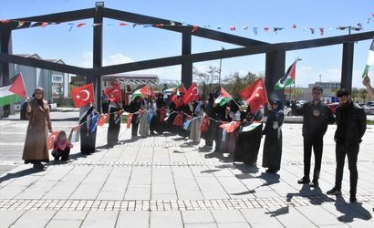 Van Yüzüncü Yıl Üniversitesi'ndeki (Van YYÜ) akademisyenler ve öğrenciler, İsrail'in Gazze'ye yönelik saldırılarını protesto etmek için Filistin haritası koreografisi oluşturdu. Üniversitede organize edilen "Filistin İçin El Ele Yürüyüşü" programı kapsamında Edebiyat Fakültesi önünde toplanan akademisyenler ve öğrenciler, Türk ve Filistin bayraklarıyla merkez yemekhaneye kadar yürüdü. Grup, burada Filistin haritası koreografisi oluşturdu.