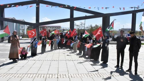 Van Yüzüncü Yıl Üniversitesi'nde akademisyenler ve öğrenciler, Gazze'deki saldırıları protesto etmek için Filistin haritası koreografisi oluşturdu.