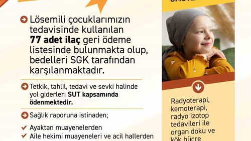 Bakan Vedat Işıkhan, 2-8 Kasım Lösemili Çocuklar Haftası'nda SGK aracılığıyla destek verildiğini ve 77 ilacın geri ödendiğini duyurdu.
