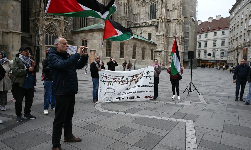 Avusturya'nın başkenti Viyana'da, "büyük felaket" olarak tanımlanan Nekbe'nin 77'inci yılı nedeniyle düzenlenen gösteride, İsrail'in Gazze'de sürdürdüğü soykırıma işaret edildi. Başkentin en eski yapılarından Aziz Stefan Katedrali önünde toplanan Filistin destekçileri, İsrail karşıtı sloganlar attı.