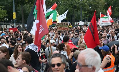Uluslararası Af Örgütü Avusturya ve birçok sivil toplum kuruluşunun öncülüğünde düzenlenen gösteriye katılan kalabalık, Filistin bayrakları taşıyarak Avusturya hükümetini Gazze'de işlenen soykırıma ortak olmakla suçladı.